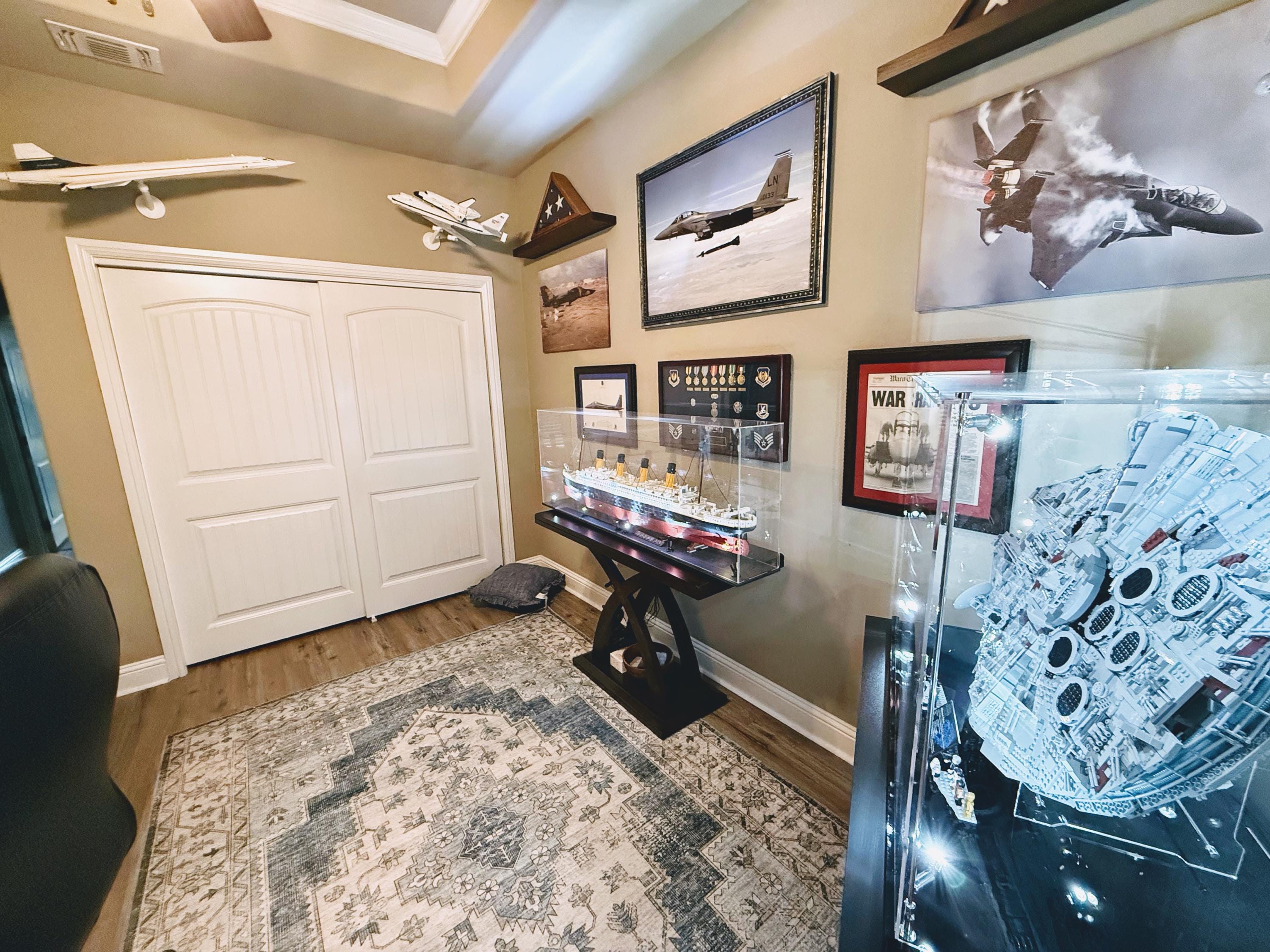 This adjustable 3D-printed wall mount securely displays your set, featuring a ball-joint design with a 25° tilt and 360° rotation for a dynamic, angled display (not all angles will work, this set is heavy and you may need to limit the angle to ensure a secure fit). Made from durable yet lightweight materials, it’s easy to install on any wall.